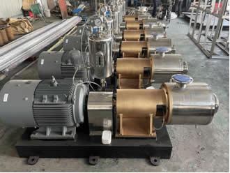 高剪切分散乳化設(shè)備不是一般的混合設(shè)備。在批次混合工藝中,轉(zhuǎn)子高速旋轉(zhuǎn)所產(chǎn)生的高切線速度和高頻機(jī)械效應(yīng)帶來的強(qiáng)勁動(dòng)能,使物料在定、轉(zhuǎn)子的間隙中受到強(qiáng)烈的機(jī)械及液力剪切、離心擠壓、液層摩擦、撞擊撕裂和湍流..